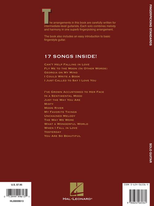 Artist: VariousFingerpicking Standards17 Songs Arranged for Solo Guitar in Standard Notation & TablaturePublisher: Hal LeonardCategory: Guitar, Bass & FrettedSeries: Guitar SoloFormat: PaperbackGuitar Tab: YESThe arrangements in this book are carefully written for intermediate-level guitarists. Each solo...Regular price $20.99 -