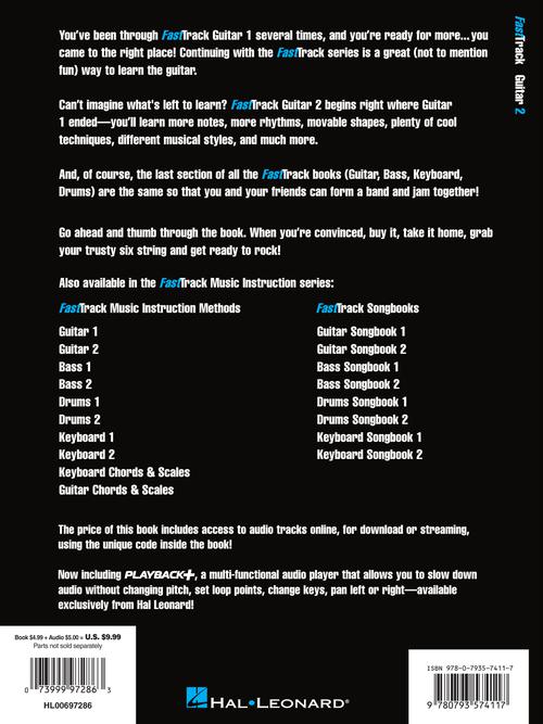 Author: Blake Neely FastTrack Guitar Method - Book 2 Publisher: Hal Leonard Category: Guitar, Bass & Fretted Series: Fast Track Music Instruction Format: Softcover Audio Online Guitar Tab: YES Covers power chords, barre chords, riffs, slides,...Regular price $11.99 -