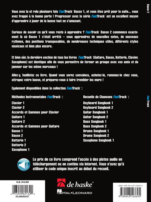 Author: Blake Neely FastTrack Bass Method - Book 2 - French Edition Publisher: Hal Leonard Category: Guitar, Bass & Fretted Series: Fast Track Music Instruction Format: Softcover Audio Online Guitar Tab: YES Includes 96 songs and...Regular price $15.99