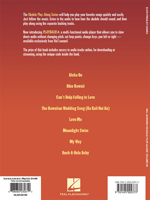 Elvis Presley Ukulele Play-Along Volume 36 Publisher: Hal Leonard Category: Guitar, Bass & Fretted Series: Ukulele Play-Along Format: Softcover Audio Online The Ukulele Play-Along series will help you play your favorite songs quickly and easily, with...Regular price $17.99 -