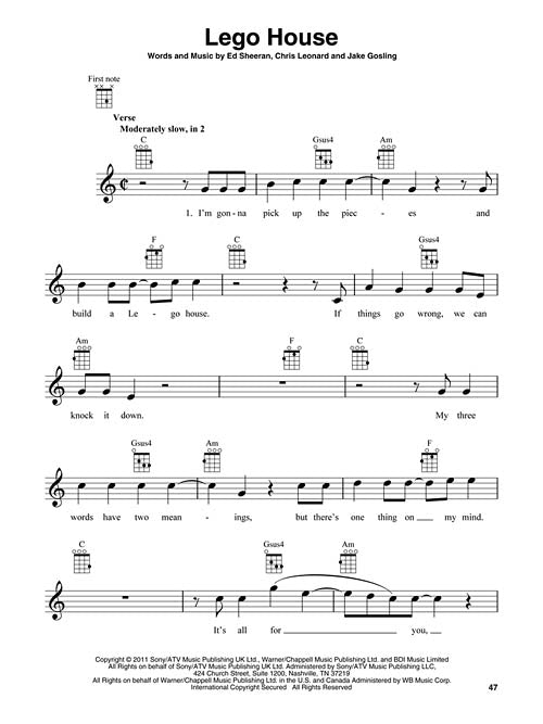 Artist: Ed Sheeran Ed Sheeran for Ukulele Softcover 15 of the hottest hits by this British singer/songwriter in arrangements you can strum & sing on the uke, including: The A Team · Don't · Lego House...Regular price $17.99 -