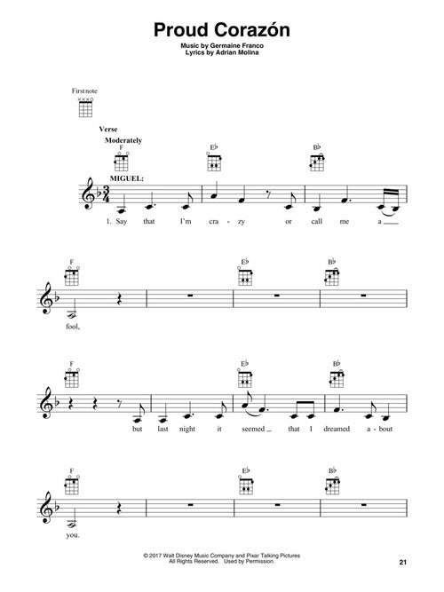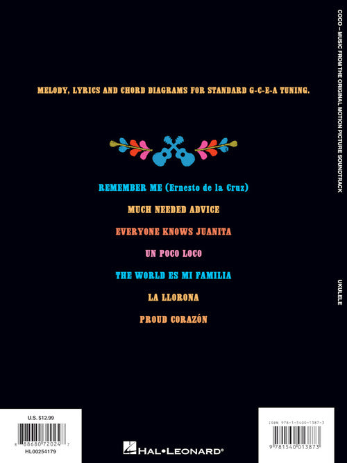 Composer: Adrian Molina Coco Music from the Original Motion Picture Soundtrack Publisher: Hal Leonard Category: Guitar, Bass & Fretted Series: Ukulele Format: Softcover This 2017 3D animated film from Disney/Pixar prominently features ukulele music. Our songbook...Regular price $20.99 -