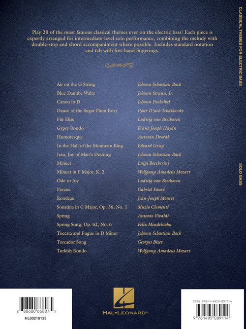 Composer: Various Classical Themes for Electric Bass 20 Pieces for Practice and Solo Performance in Standard Notation & Tab Softcover Play 20 of the most famous classical themes ever on the electric bass! Each piece is...Regular price $19.99 -