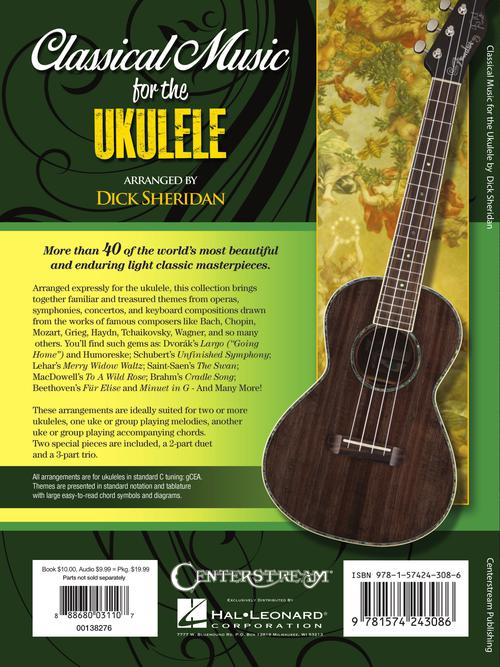 Classical Music for the Ukulele Publisher: Centerstream Publications Category: Guitar, Bass & Fretted Series: Fretted Format: Softcover Audio Online Familiar and treasured themes from operas, symphonies, concertos and keyboard compositions from works by Bach, Chopin, Mozart,...Regular price $23.99 -