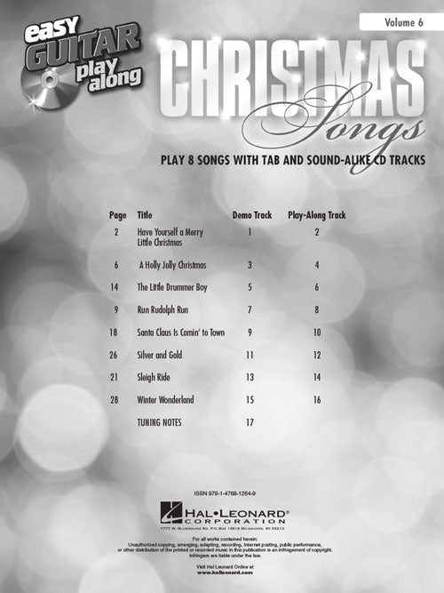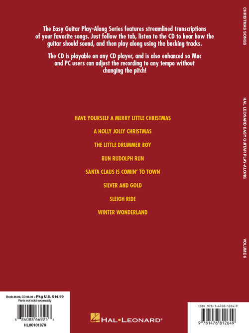 Christmas Songs Easy Guitar Play-Along Volume 6 Publisher: Hal Leonard Category: Guitar, Bass & Fretted Series: Easy Guitar Play-Along Format: Softcover with CD Guitar Tab: YES The Easy Guitar Play-Alongยฎ Series features streamlined transcriptions of your...Regular price $17.99 -
