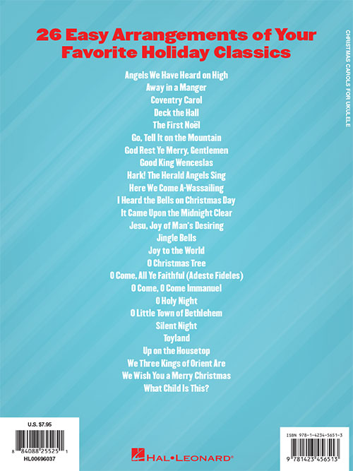 Christmas Carols for Ukulele Publisher: Hal Leonard Category: Guitar, Bass & Fretted Series: Fretted Format: Softcover Take your uke along while dashing to your holiday gatherings this year, and don't forget to bring this essential collection...Regular price $13.99 -
