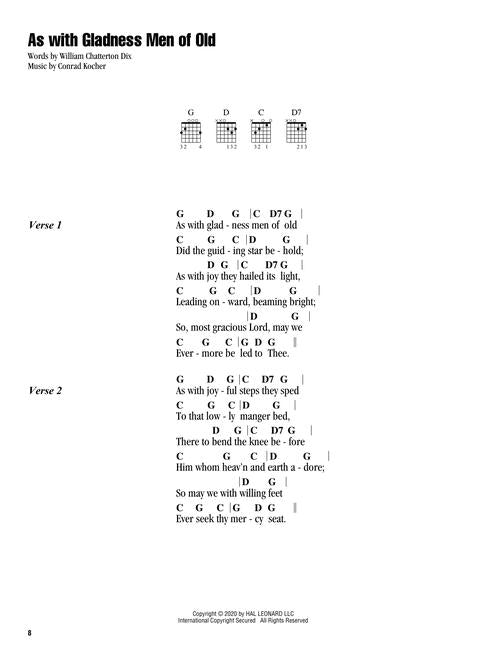Composer: Various Christmas Carols Publisher: Hal Leonard Category: Guitar, Bass & Fretted Series: Ukulele Chord Songbook Format: Softcover This series features convenient 6 inch. x 9 inch. books with complete lyrics and chord symbols above the...Regular price $17.99 -