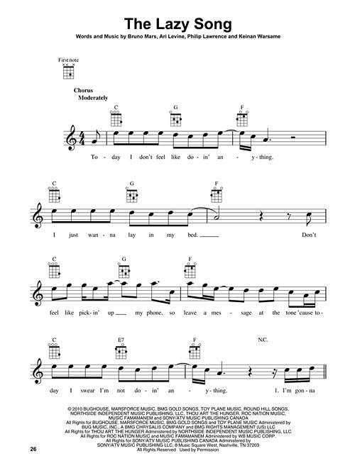 Artist: Bruno Mars Bruno Mars for Ukulele Softcover The tunes of this Hawaiian-born pop superstar are great fits for the ukulele. Here are 15 hits to strum on your uke and sing along: Grenade · It...Regular price $19.99 -
