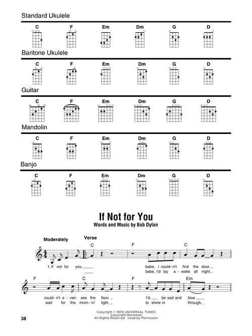 Bob Dylan - Strum Together Lyrics, Melody Lines, and Chord Frames for Standard Uke, Baritone Uke, Guitar, Mandolin, and Banjo Publisher: Hal Leonard Category: Guitar, Bass & Fretted Series: Strum Together Format: Softcover Strum Together songbooks...Regular price $23.99 -