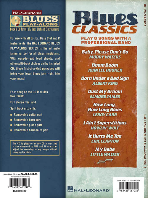 Blues Classics Blues Play-Along Volume 8 Publisher: Hal Leonard Category: Guitar, Bass & Fretted Series: Blues Play-Along Format: Softcover with CD For use with all Bb, Eb, Bass Clef, and C instruments, the Hal Leonard Blues...Regular price $15.99 -
