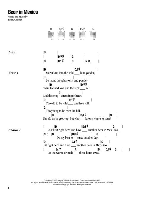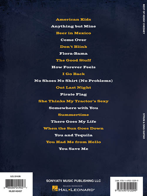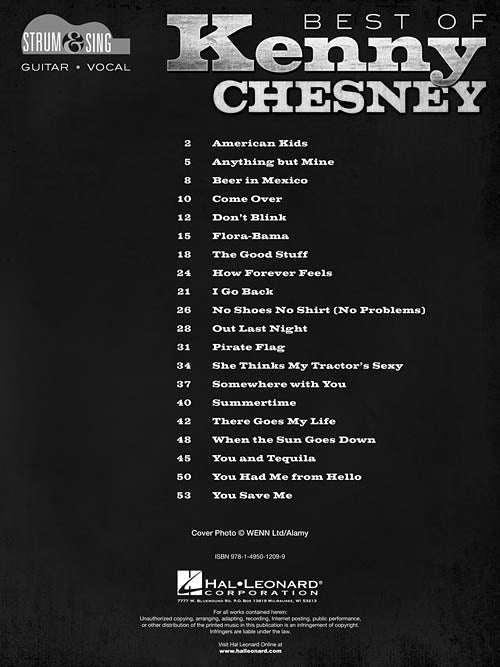 Artist: Kenny Chesney Best of Kenny Chesney - Strum & Sing Guitar Softcover 20 hits by this country superstar in pared-down arrangements of just chords and lyrics for: American Kids · Beer in Mexico · Come...Regular price $17.99 -
