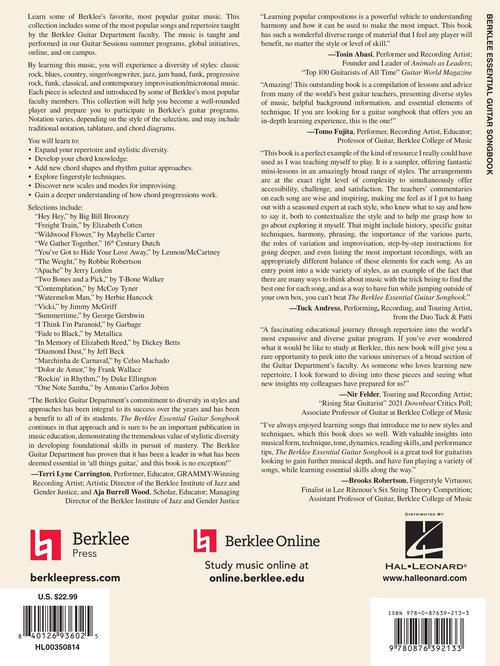 Berklee Essential Guitar Songbook Publisher: Berklee Press Category: Guitar, Bass & Fretted Series: Berklee Guide Format: Softcover Learn some of Berklee's favorite, most popular guitar music. This collection includes some of the most popular songs and...Regular price $27.99 -