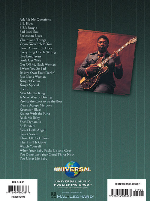 B.B. King - Anthology Publisher: Hal Leonard Category: Guitar, Bass & Fretted Series: Guitar Recorded Version Format: Paperback Guitar Tab: YES The All Music Guide praises B.B. King in no uncertain terms as the single most...Regular price $41.99 -