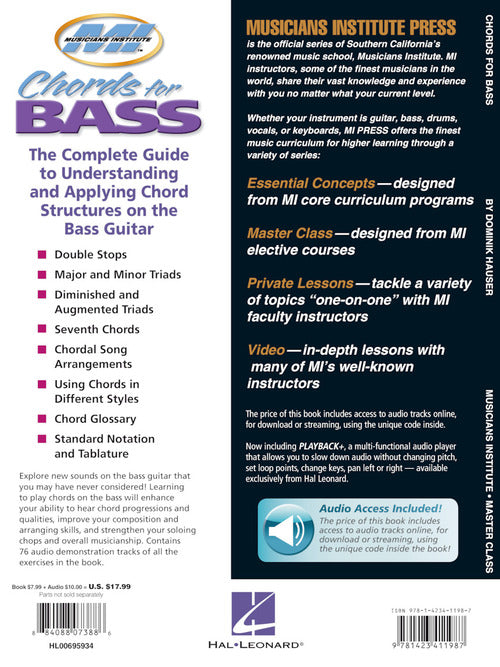 Author: Dominik Hauser Chords for Bass Master Class Series Publisher: Musicians Institute Press Category: Guitar, Bass & Fretted Series: Musicians Institute Press Format: Softcover Audio Online Guitar Tab: YES Explore new sounds on the bass that...Regular price $29.99