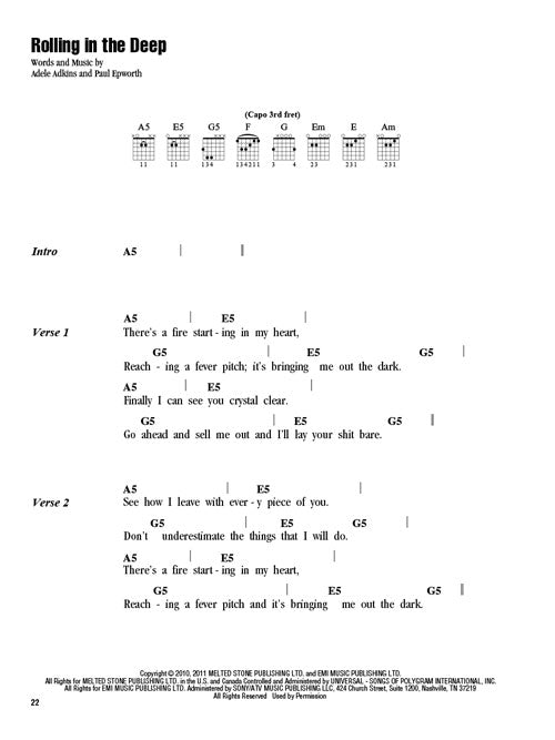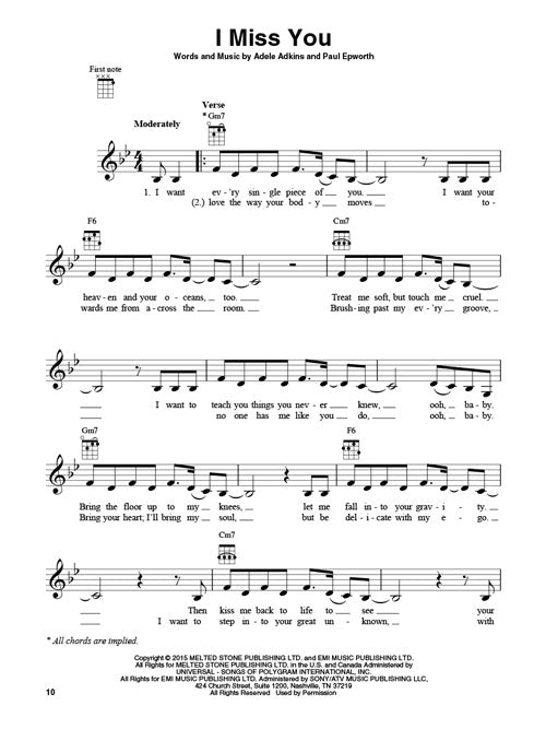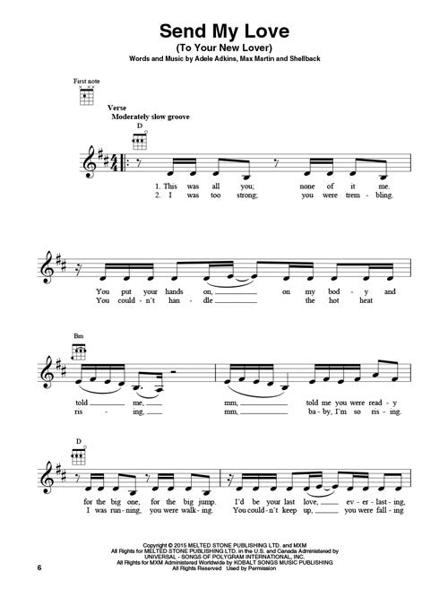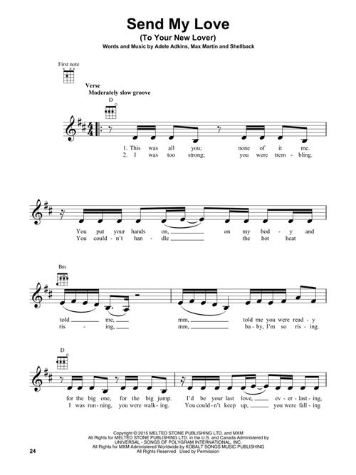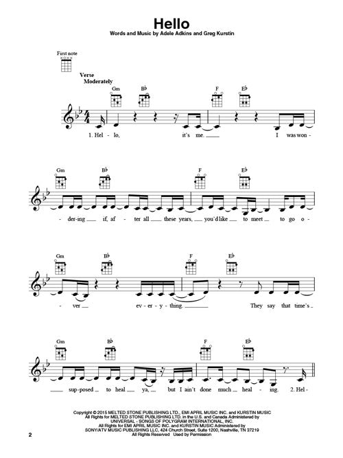 Artist: Adele Adele for Ukulele Softcover A dozen hits from this popular British diva for uke, including: Chasing Pavements · Hello · Lovesong · Make You Feel My Love · Rolling in the Deep · Rumour...Regular price $21.99 -