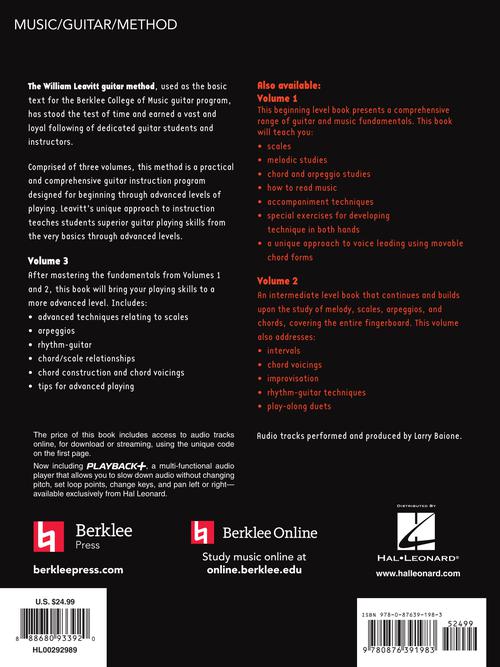 Author: William Leavitt A Modern Method for Guitar - Volume 3 Publisher: Berklee Press Category: Guitar, Bass & Fretted Series: Berklee Methods Format: Softcover Audio Online Leavitt's practical, comprehensive method is used as the basic text...Regular price $29.99 -