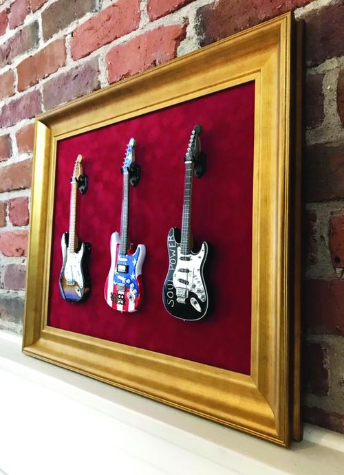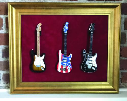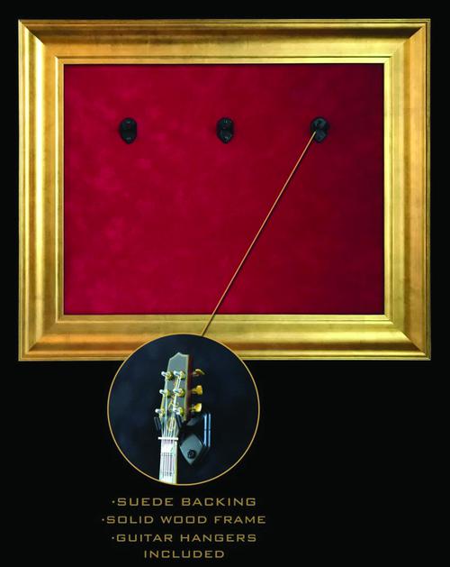 22 X 18 Mini Guitar Display Frame Red Suede Gold Frame Holds 3 Models