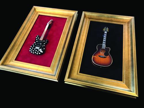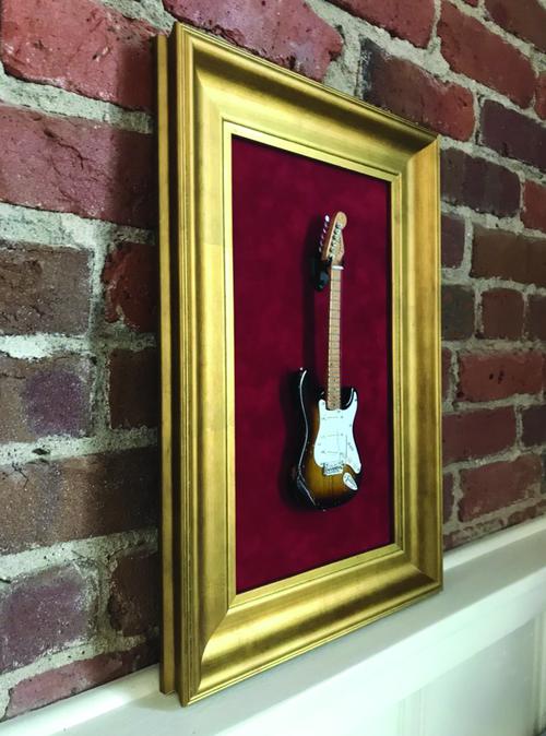 12 X 18 Mini Guitar Display Frame Red Suede Gold Frame Holds 1 Model