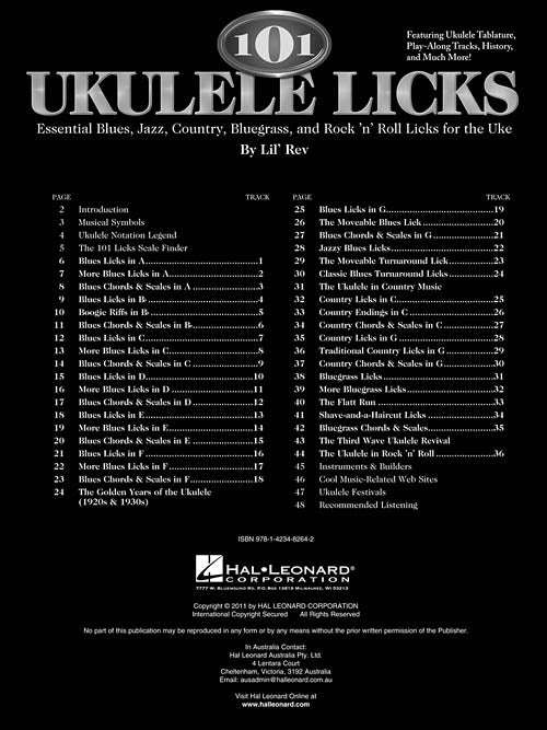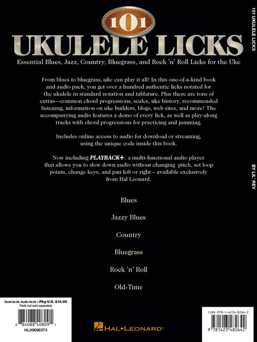 Author: Lil' Rev 101 Ukulele Licks Essential Blues, Jazz, Country, Bluegrass, and Rock 'n' Roll Licks for the Uke Publisher: Hal Leonard Category: Guitar, Bass & Fretted Series: Ukulele Format: Softcover Audio Online From blues to...Regular price $21.99
