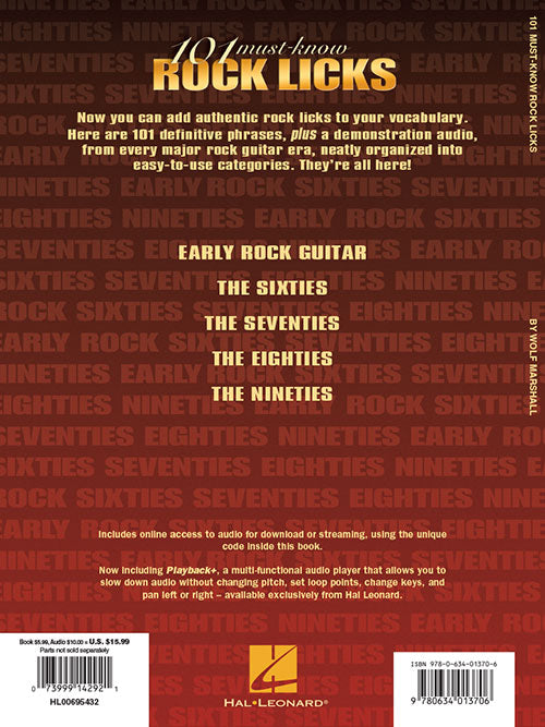Author: Wolf Marshall 101 Must-Know Rock Licks A Quick, Easy Reference for All Guitarists Publisher: Hal Leonard Category: Guitar, Bass & Fretted Series: Guitar Educational Format: Softcover Audio Online Guitar Tab: YES Now you can add...Regular price $19.99 -