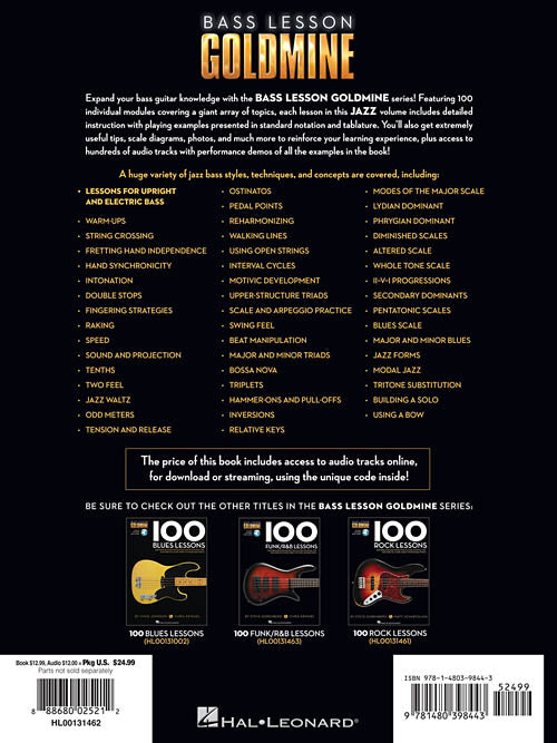Author: Various 100 Jazz Lessons Bass Lesson Goldmine Series Softcover Audio Online Expand your bass knowledge with the Bass Lesson Goldmine series! Featuring 100 individual modules covering a giant array of topics, each lesson in this...Regular price $29.99 -
