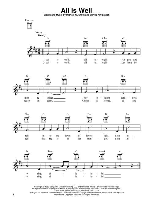 Artist: Various 100 Most Beautiful Christmas Songs Publisher: Hal Leonard Category: Keyboard & Piano/Vocal/Guitar Series: Ukulele Format: Softcover Arrangements for ukulele of 100 all-time Christmas favorites, both sacred and secular in nature. Includes: Angels We Have...Regular price $21.99 -