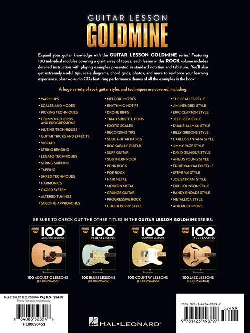 Author: Chad Johnson 100 Rock Lessons Guitar Lesson Goldmine Series Publisher: Hal Leonard Category: Guitar, Bass & Fretted Series: Guitar Educational Format: Softcover Audio Online Guitar Tab: YES Expand your guitar knowledge with the Guitar Lesson...Regular price $29.99 -