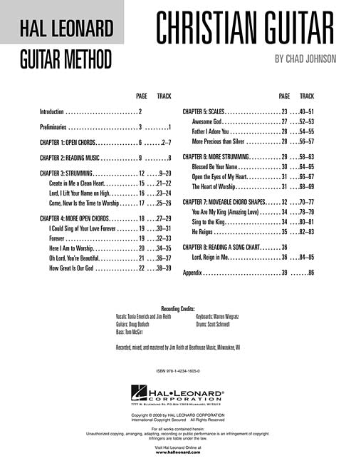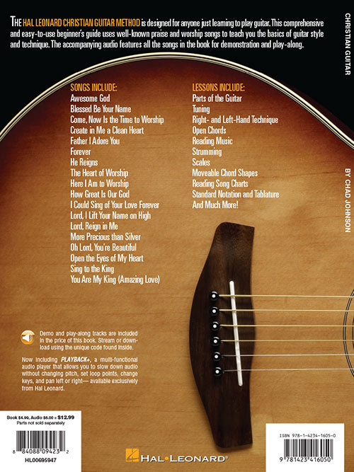 Author: Chad Johnson Christian Guitar A Beginner's Guide with Step-by-Step Instruction and 18 Great Worship Songs to Learn and Play Publisher: Hal Leonard Category: Guitar, Bass & Fretted Series: Guitar Educational Format: Softcover Audio Online Guitar...Regular price $23.99 -