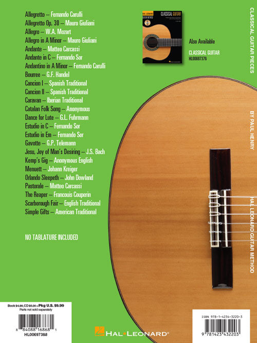 Arranger: Paul Henry Classical Guitar Pieces 24 Pieces Arranged for Solo Guitar in Standard Notation Publisher: Hal Leonard Category: Guitar, Bass & Fretted Series: Guitar Method Format: Softcover Audio Online A great supplement to the Hal...Regular price $15.99 -