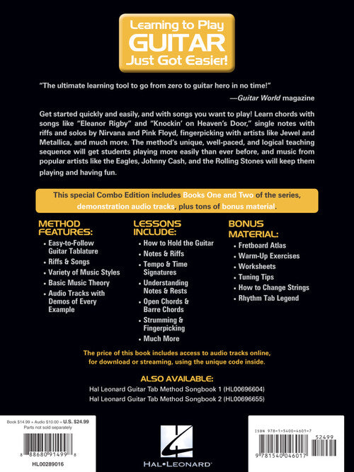 Hal Leonard Acoustic Guitar Tab Method - Combo EditionBooks 1 & 2 with Online Audio, Plus Bonus MaterialPublisher: Hal LeonardCategory: Guitar, Bass & FrettedSeries: Guitar Tab MethodFormat: Softcover Audio OnlineGuitar Tab: YESThe ultimate learning tool to...Regular price $33.99 -