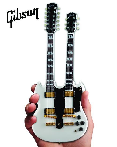 Gibson SG Eds-1275 Doubleneck White Mini Guitar Replica Publisher: Axe Heaven Category: Guitar, Bass & Fretted Series: Axe Heaven Guitars Format: Gift Item These miniature replica model guitars are officially licensed to commemorate iconic Gibson(TM) instruments....Regular price $71.99 -