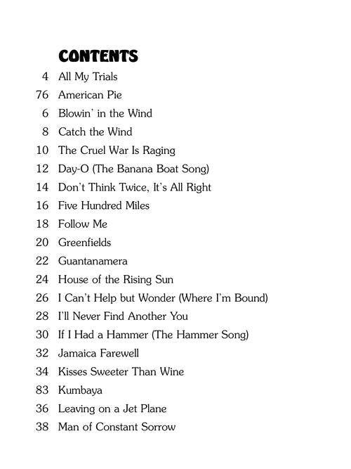 Composer: Various Campfire Folk Songs - Strum & Sing Guitar Publisher: Cherry Lane Music Category: Guitar, Bass & Fretted Series: Strum & Sing Guitar Format: Paperback This collection includes 40 of your favorite songs to sing...Regular price $20.99 -