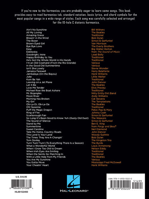 First 50 Songs You Should Play on Publisher: Hal Leonard Category: Solo Instrumental Series: Harmonica Format: Softcover Guitar Tab: YES If you're new to the harmonica, you are probably eager to learn some songs. This book...Regular price $23.99 -