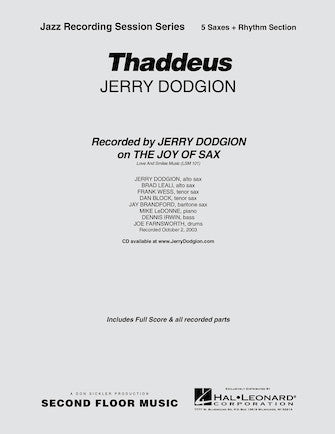 Composer: Jerry Dodgion Thaddeus Saxophone Part Inventory # : 00000997 UPC: 73999597615 ISBN: 634078550 Width: 8.5" Length: 11" Height: 0.136" Product Weight: 0.3 lbs.Regular price $33.99 -