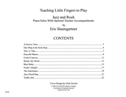 Teaching Little Fingers to Play Jazz and Rock - Book only Teaching Little Fingers to Play/Early Elementary Level Publisher: Willis Music Category: Educational Keyboard Series: Willis Format: Paperback 11 solos: Blue Waltz · Camel Caravan ·...Regular price $13.99 -