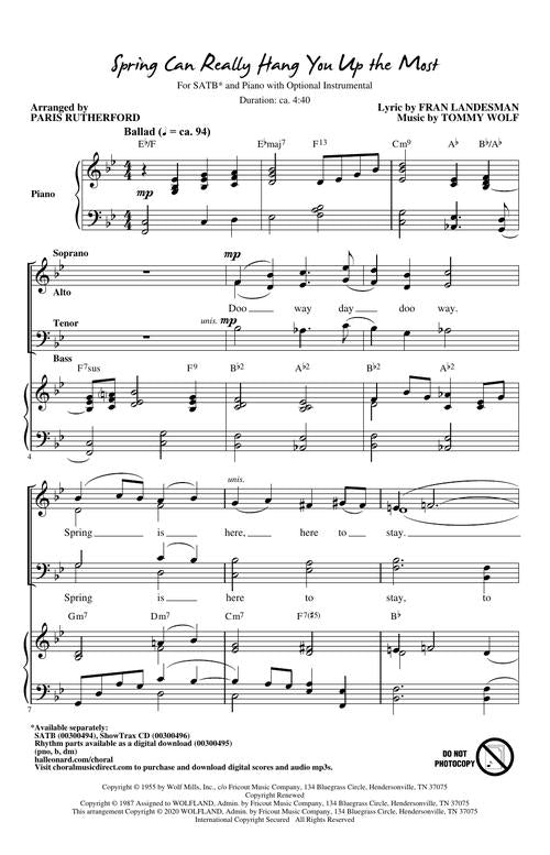 Spring Can Really Hang You Up the Most SATB Arranger: Paris Rutherford Item# 00300494 Sheet MusicRegular price $26.99