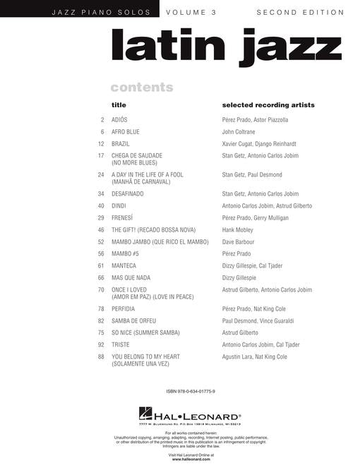 Composer: Various Latin Jazz Jazz Piano Solos Series Volume 3 Publisher: Hal Leonard Category: Keyboard & Piano/Vocal/Guitar Series: Jazz Piano Solos Format: Softcover 17 Latin jazz classics, including: Adios (Perez Prado, Astor Piazzolla) · Brazil (Xavier...Regular price $23.99 -