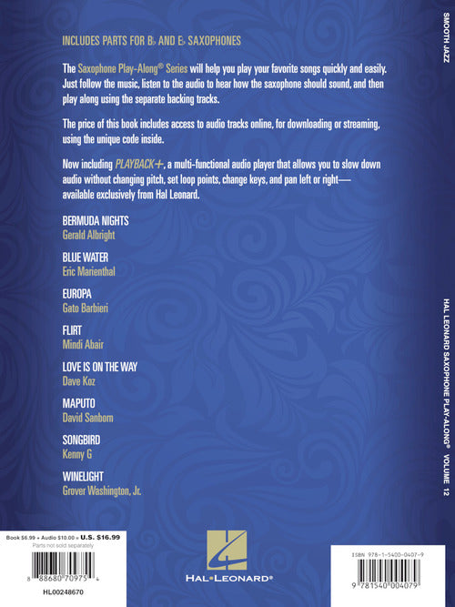 Smooth Jazz Saxophone Play-Along Volume 12 Publisher: Hal Leonard Category: Solo Instrumental Series: Saxophone Play-Along Format: Softcover Audio Online The Saxophone Play-Along® Series will help you play your favorite songs quickly and easily. Just follow the...Regular price $23.99 -