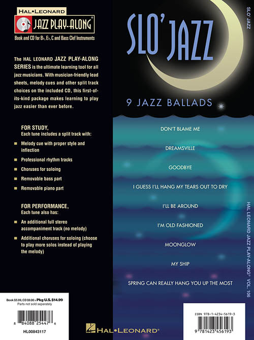 Composer: Various Slo' Jazz Jazz Play-Along Volume 106 Publisher: Hal Leonard Category: Solo Instrumental Series: Jazz Play Along Format: Softcover with CD For use with all Bb, Eb, C and Bass Clef instruments, the Jazz Play-Along...Regular price $20.99 -