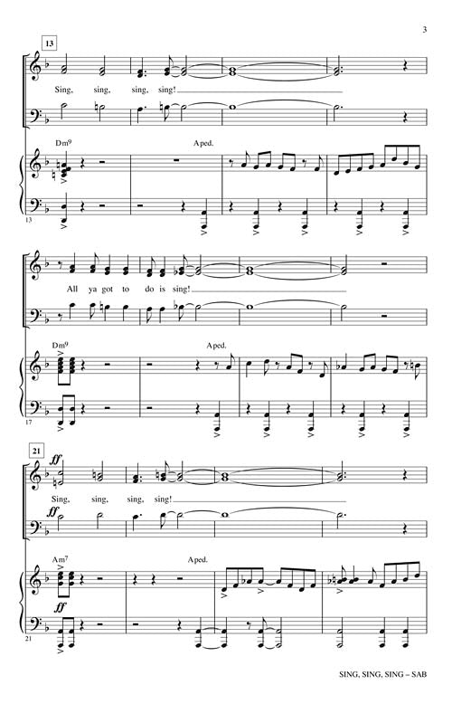 Sing, Sing, Sing SAB Here is the great tune from the big band era in a contemporary vocal jazz setting. Hot rhythm and horns back up the vocals for a pop/jazz/show choir selection extraordinaire! Inventory #...Regular price $33.99 -