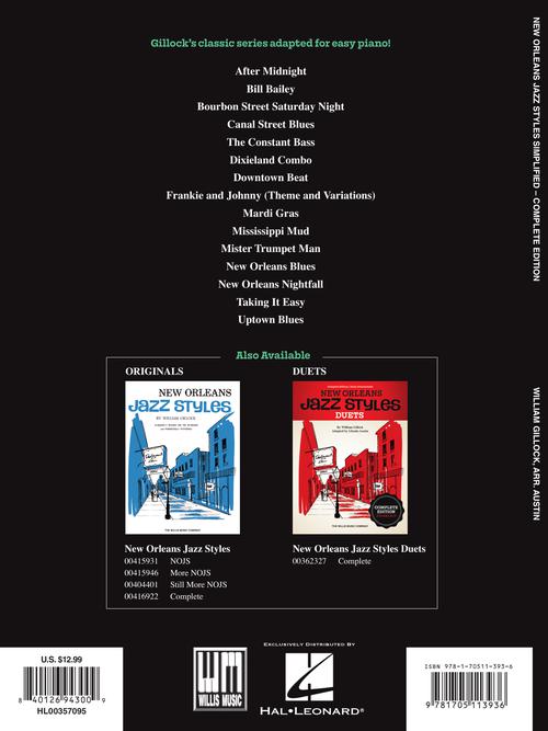 Simplified New Orleans Jazz Styles - Complete Edition Publisher: Willis Music Category: Educational Keyboard Series: Willis Format: Softcover All 15 songs from Gillock's classic New Orleans Jazz Styles series adapted for easy piano. Titles: After Midnight...Regular price $15.99 -
