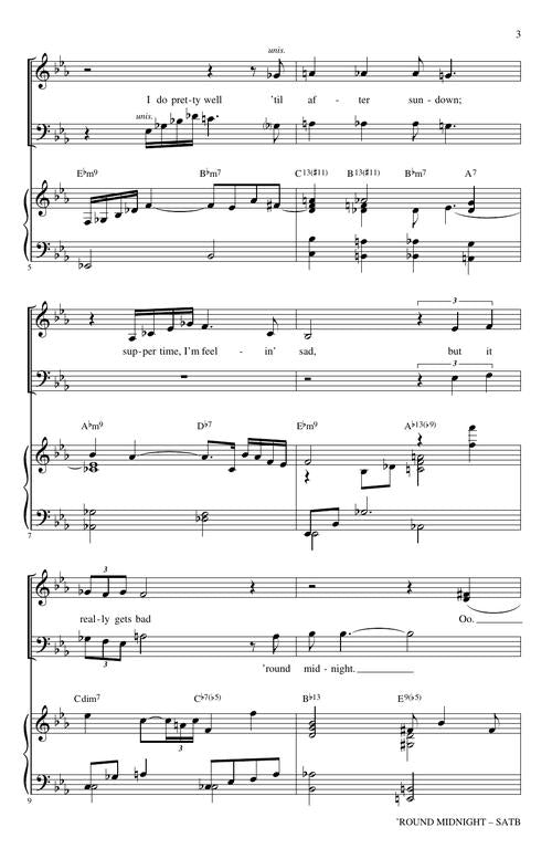 Round Midnight Jazz Chorals Satb Thelonius Monk