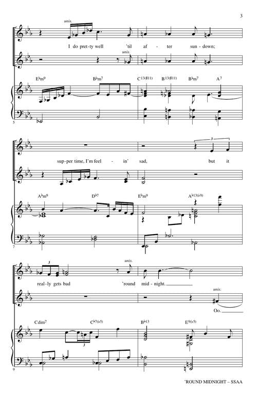 Round Midnight Jazz Chorals Ssaa Thelonius Monk