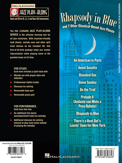 Composer: Various Rhapsody in Blue & 7 Other Classical-Based Jazz Pieces Jazz Play-Along Volume 182 Softcover with CD For use with all B-flat, E-flat, Bass Clef and C instruments, the Jazz Play-Along Series is the ultimate...Regular price $20.99