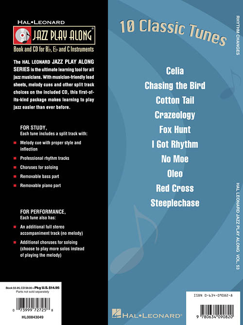Artist: Various Rhythm Changes Jazz Play-Along Volume 53 Publisher: Hal Leonard Category: Solo Instrumental Series: Jazz Play Along Format: Softcover with CD For use with all Bb, Eb and C instruments, the Jazz Play-Along Series is...Regular price $20.99 -