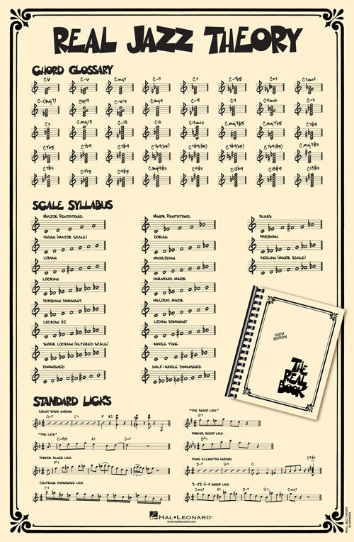 Real Jazz Theory Poster 22 inch. x 34 inch. Poster featuring Real Book Notation Publisher: Hal Leonard Category: Band/Orchestra/Ensemble Series: Jazz Instruction Format: General Merchandise A chord glossary, scale syllabus and a series of standard licks...Regular price $9.99 -