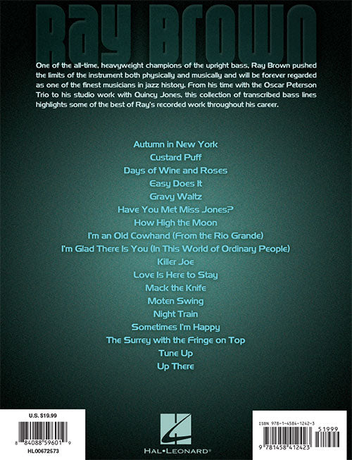 Ray Brown - Legendary Jazz Bassist Publisher: Hal Leonard Category: Guitar, Bass & Fretted Series: Artist Transcriptions Format: Softcover A tribute to Ray Brown including 18 transcriptions, performance notes, photos, and a foreword by Christian McBride....Regular price $29.99 -