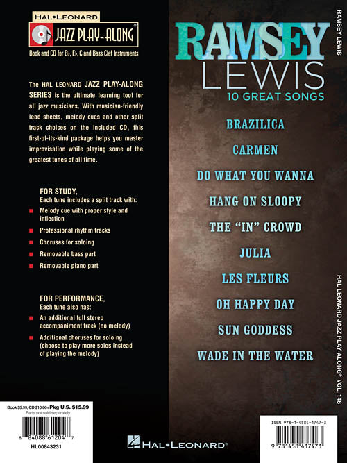 Artist: Ramsey Lewis Ramsey Lewis Jazz Play-Along Volume 146 Publisher: Hal Leonard Category: Band/Orchestra/Ensemble Series: Jazz Play Along Format: Softcover with CD For use with all Bb, Eb, C and bass clef instruments, the Jazz Play-Along...Regular price $20.99 -