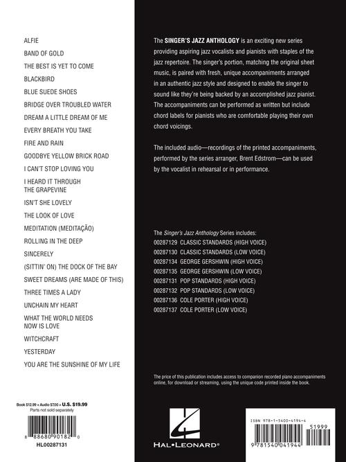 Pop Standards Singers Jazz Anthology Low Voice With Recorded Piano Accompanim
