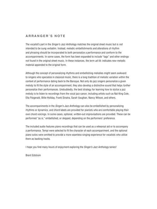 Composer: Various Pop Standards Singer's Jazz Anthology - Low Voice with Recorded Piano Accompaniments Online Publisher: Hal Leonard Category: Vocal Series: Singer's Jazz Anthology Format: Softcover Audio Online The Singer's Jazz Anthology is an exciting new...Regular price $23.99 -